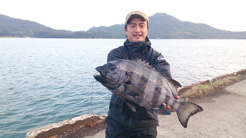 磯に渡り、アジを泳がせての高級魚アコウをGET