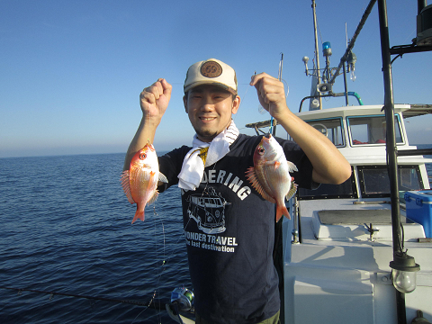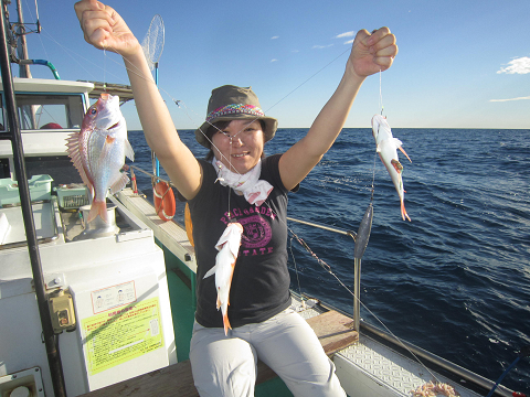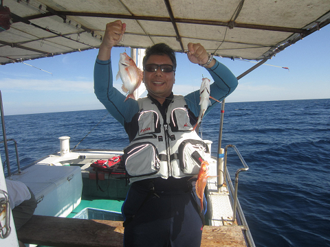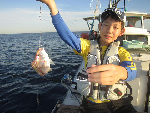 アジは釣れるのですが、餌には大きすぎ…小さいのは小さすぎ…ベストサイズの餌がほとんど揃わなく、なんとか使える餌で出来るまで釣って、餌が無くなれば他の釣りをする事にして沖へ!