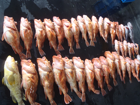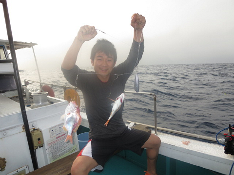 岡山市 三宅様御一行 レンコ鯛釣りに挑戦しました。 7名グループと言う事で僚船の白洋さんと分けての出船。 釣れるのですが、初心者と言う事もあり半分は船酔いダウン… 残ったメンバーでお土産確保して早上がりとなりました。