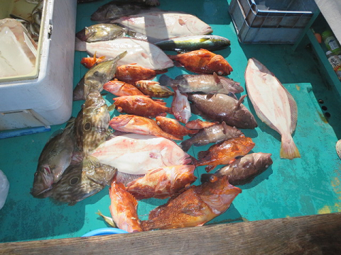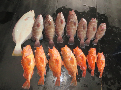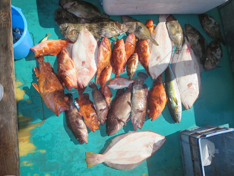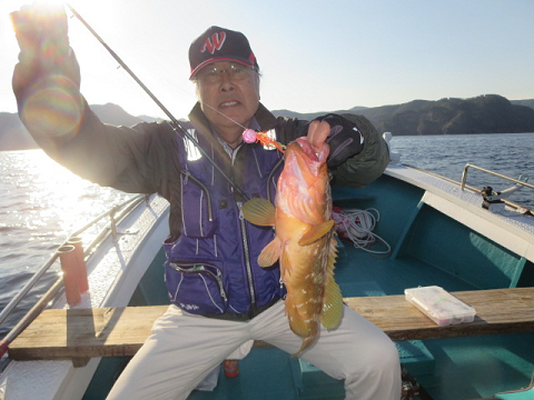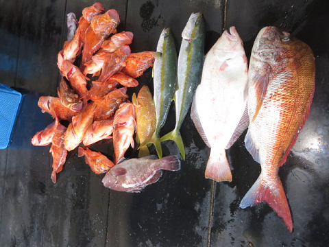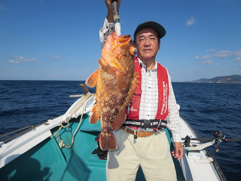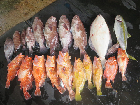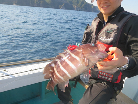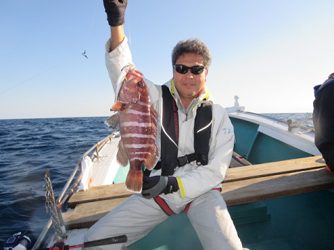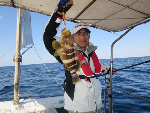 松江市 仲井貴義様 岡山市 山地弘様 米子市 徳岡広昭様 前日は磯釣りを楽しみ、本日は船から鯛ラバでいろいろと釣り楽しみました! マハタ・アコウ・アオハタ・マダイ・カサゴ