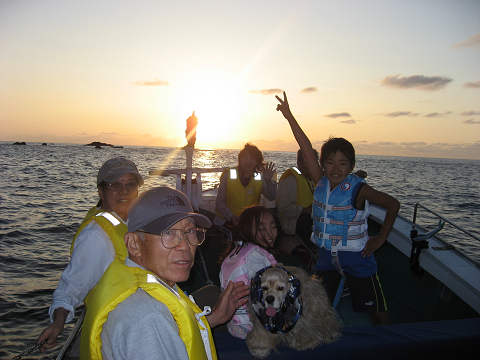 出港時には太陽が良い感じで出てましたが、その少し下にはあやしい雲が待機してます…今日は出船数も多くやっと順番が来たと思ったら、なんと!!厚い雲に隠れてしまい残念ながらその後も太陽が出て来ませんでした。でも、あとちょっとで見れなかった事が逆にいい思い出になって楽しかった〜また今度見に来ましょう!っとお客さん^^