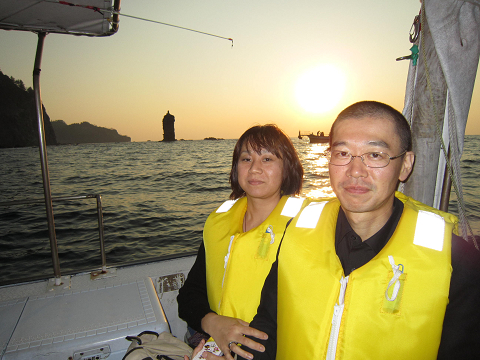 ローソク島直行で船を飛ばして向かいますが、やはり暑い雲の中へ入ってしまい夕日は残念ながら…