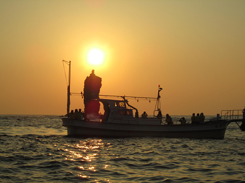 出船時にはぼんやりした夕日が出てますが、すぐに雲隠れしそうな天気。