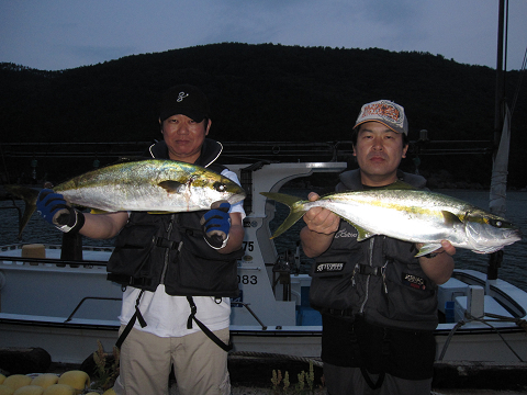 バラした後、すでに納竿間際10分前で焦りますが、再びヒットで仲良く本命ヒラマサ♪