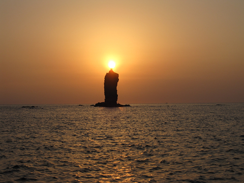 しかも年間でもわずか三日しか無い冠島と馬背島との水道から見るローソク島に夕日が合うタイミングが本日!!